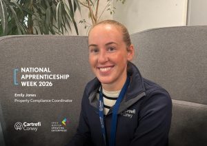 Being an apprentice at Cartrefi Conwy meant getting involved with different teams and gaining a genuine understanding of how the organisation works. During my apprenticeship, I was honoured to receive two Apprentice of the Year awards — one from Coleg Llandrillo and one at a national level within the Welsh housing sector.