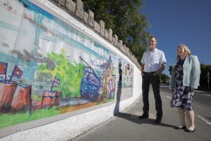 Unveiling of Cwm mural; Llandudno ; Owen Veldhuizen – Community Regeneration Manager Cartrefi Conwy; with Cllr Angela O’Grady . pictured with